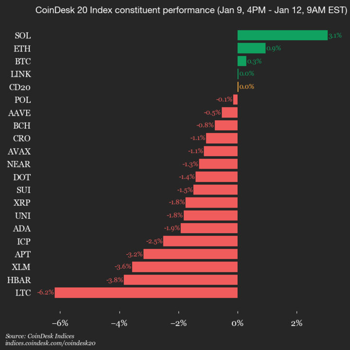CoinDesk 20 Performance Update: Solana (SOL) Gains 3.1% as Index Trades Flat