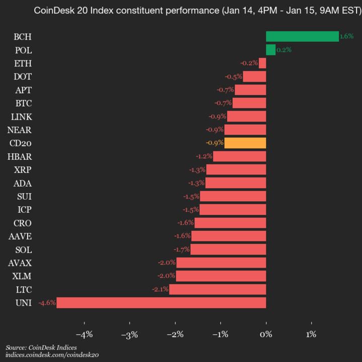 Leaders: BCH (+1.6%) and POL (+0.2%).