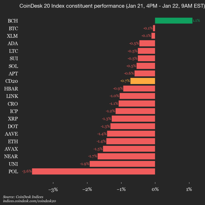 Leaders: BCH (+1.1%) and BTC (-0.1%).