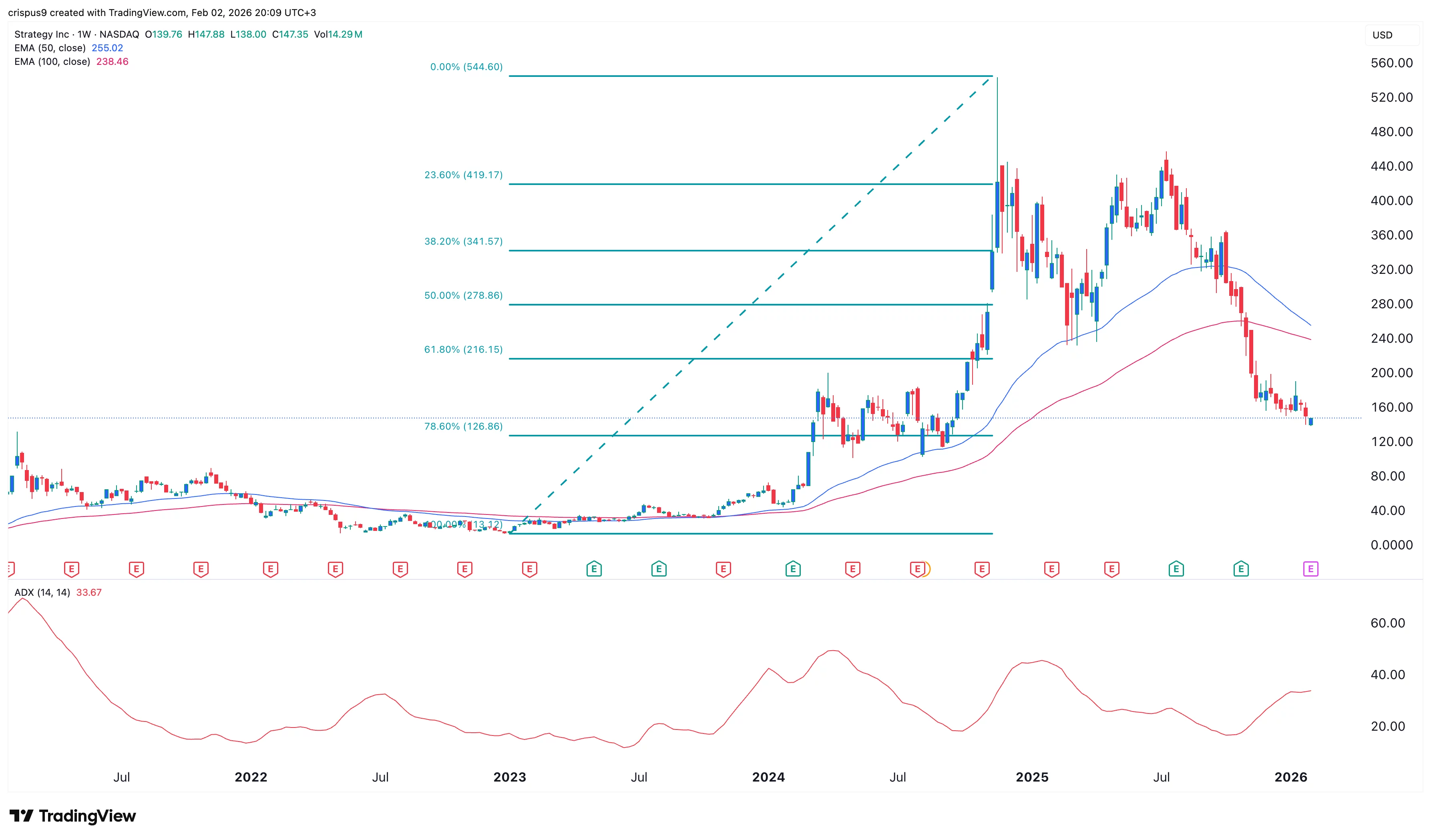 - Technical analysis suggests that MSTR may crash to $100 soon.