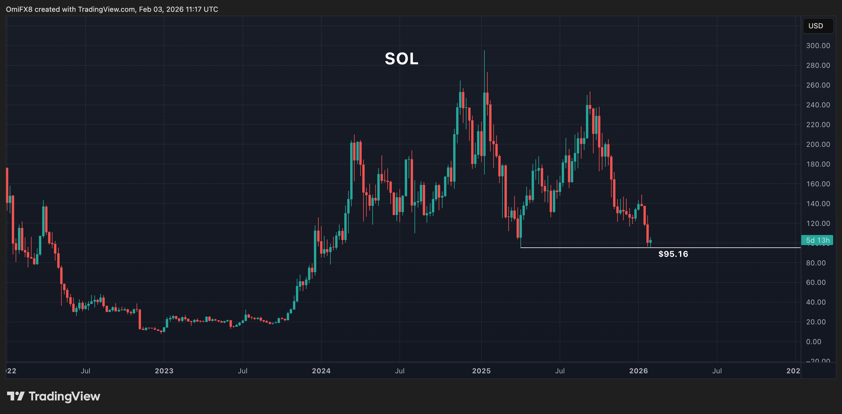 - this support breaks, Solana faces little backing until the mid-$30s. Bulls, therefore, need to hold $95.16 to avoid a deeper crash.