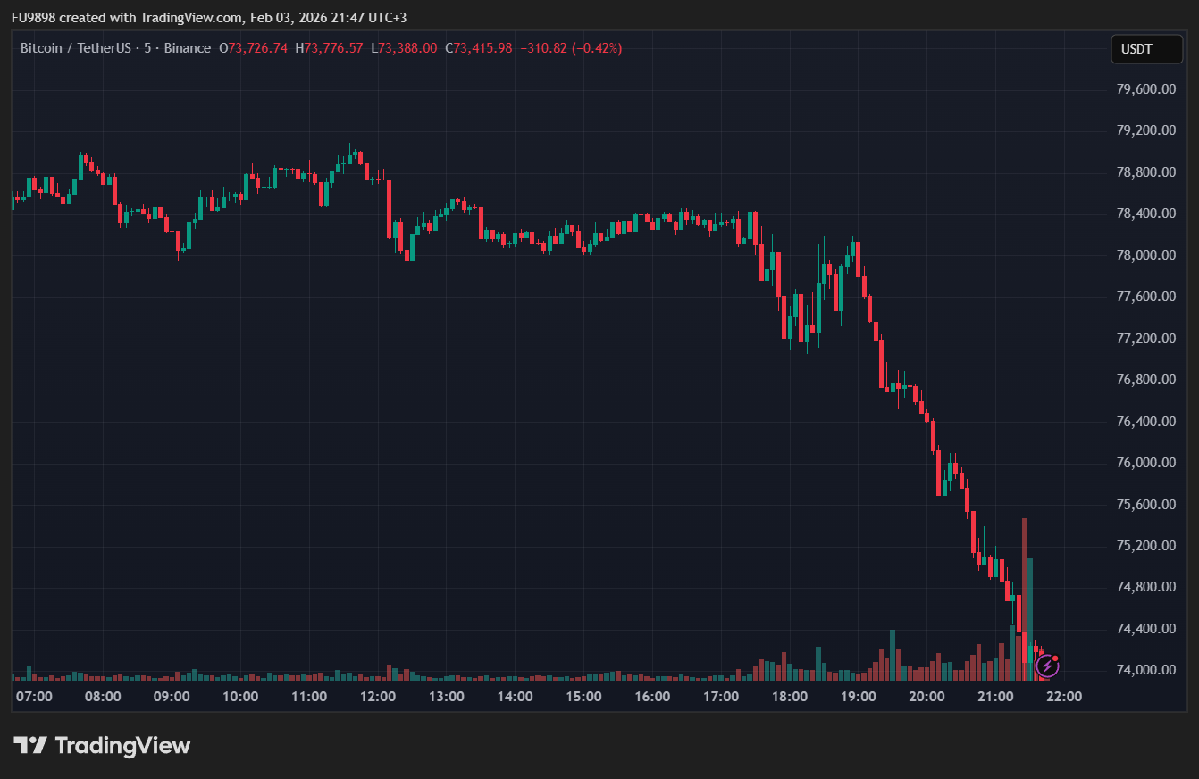 The largest cryptocurrency hit $73,500, its lowest price since Donald Trump’s election victory in the US.