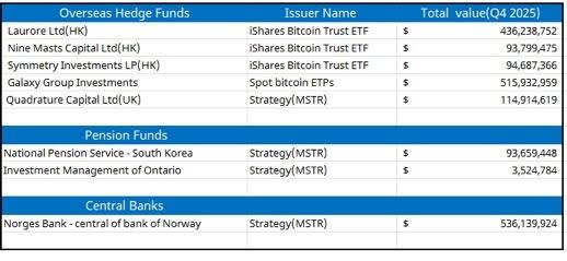 Overseas hedge funds from Hong Kong and the UK are showing a massive appetite for regulated exposure, heavily accumulating spot bitcoin ETFs to build their portfolios. Laurore Ltd. has newly emerged with a 100% portfolio concentration IBIT.