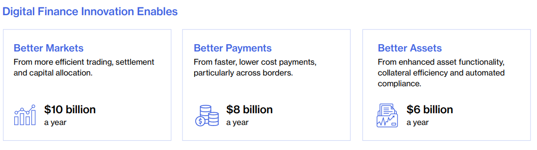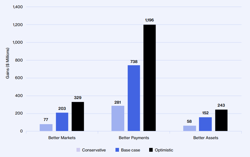 “Nearly half of the asset-related economic gains arise from enabling collateralized lending, repo, and invoice financing markets on tokenized rails, where smart contracts automate collateral management, margining, and settlement,” the report states.