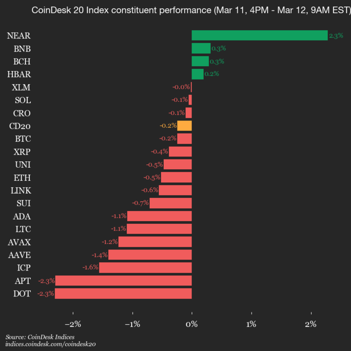 Leaders: NEAR (+2.3%) and BNB (+0.3%).