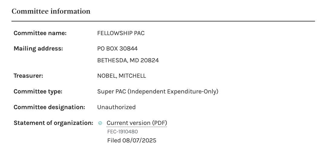 The announcement marked Fellowship’s return to public view after months of near-total silence. Since its September launch, the PAC has made only three public statements on its X account.