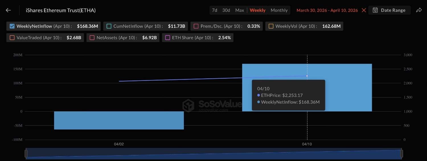 At the same time, investors funneled around $186 million into the iShares Ethereum Trust (ETHA). For comparison, the week before that saw nearly $64 million in outflows.
