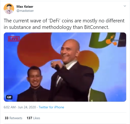 ‘The current wave of ‘DeFi’ coins are mostly no different than BitConnect’