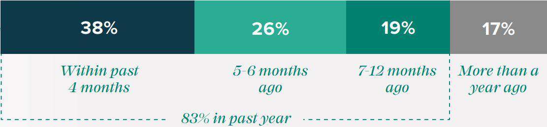 83% of those who answered that they have previously bought Bitcoin have made their purchase in the past year. The most significant percentage here was in the past four months – 38%.