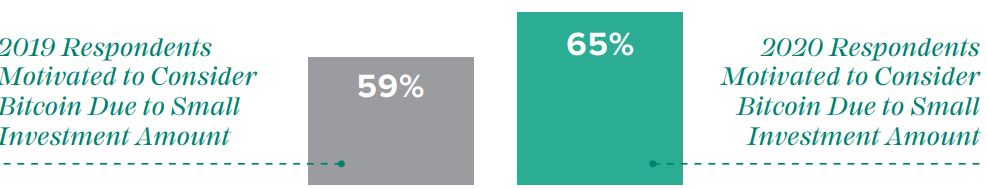 65% have answered that having the option to buy less than one bitcoin has made them feel safer towards entering the space. The percentage has grown by 6 points since last year.