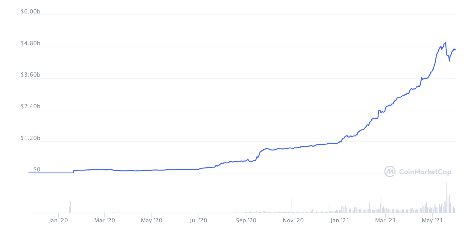Unlike the other three, this is a trustless stablecoin with the smart contract being a custodian. It has grown from just $100 million last year to now almost $5 billion.