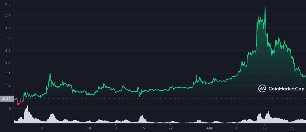At press time, the network’s native token, CEL, traded at $1.18, according to data from CoinMarketCap. It had rallied to a high of $4.40 on Aug. 15. It has since declined by 73%, including a 17% single-day drop on Aug. 25.