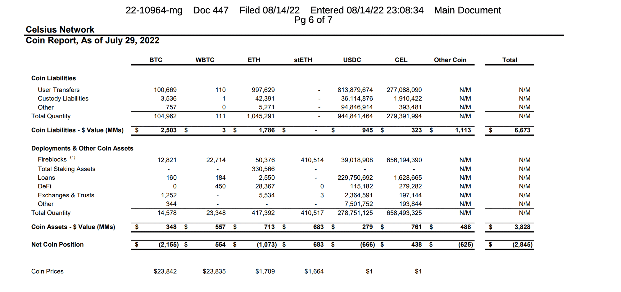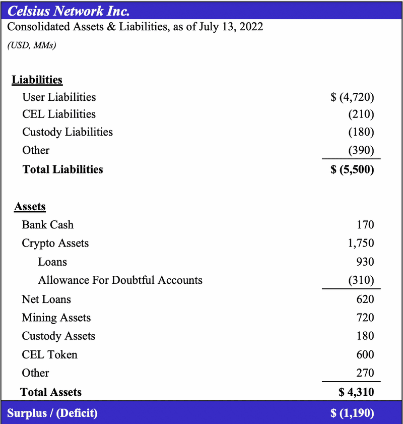 A month later, on July 14, Celsius filed for Chapter 11 bankruptcy. According to the court documents, the network claimed that its total liabilities were valued at $5.5 billion against its total assets of $4.3 billion, making its deficit $1.2 billion.