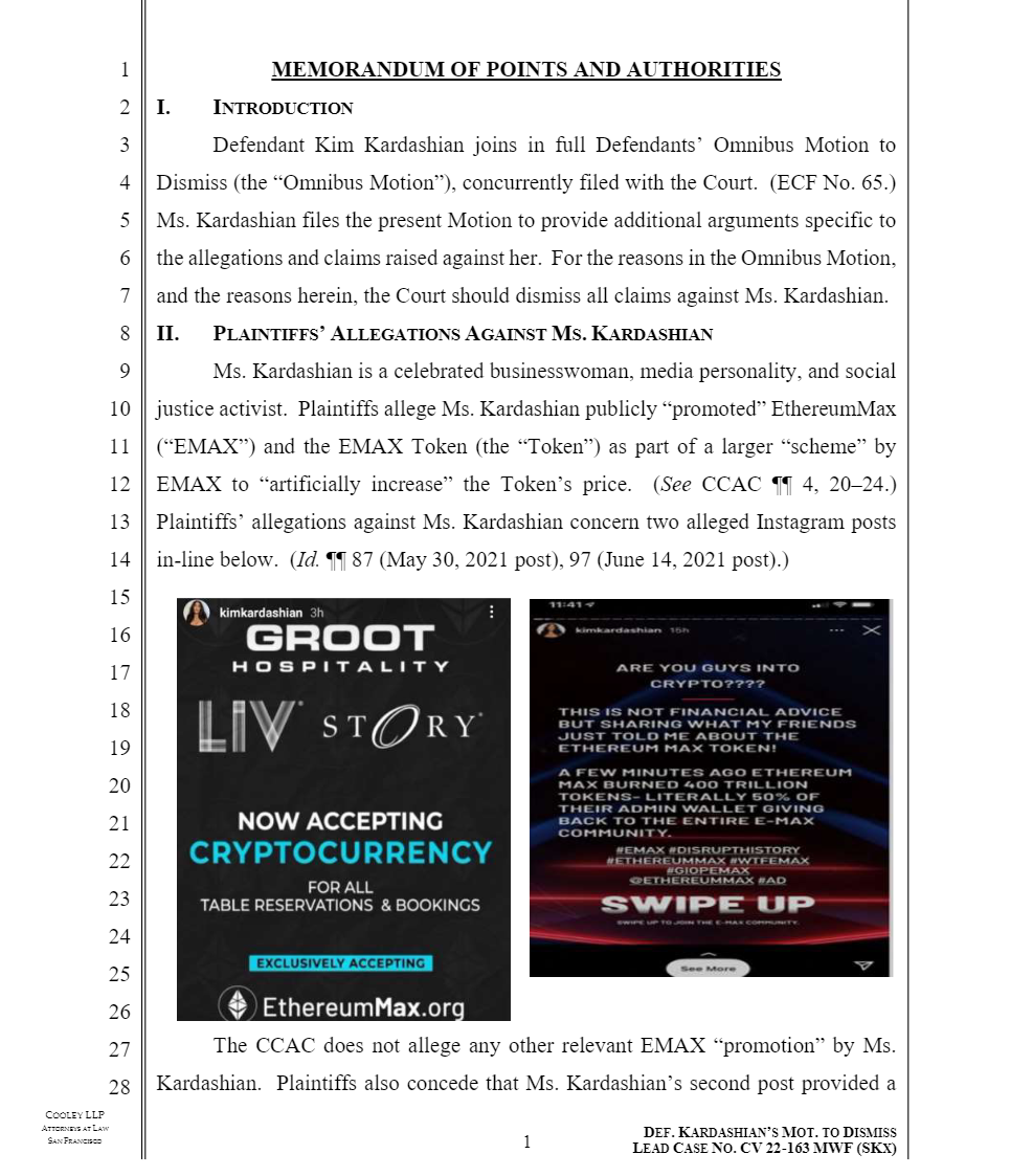 Kardashian’s legal team also filed a motion to set aside a class-action complaint aimed at the businesswoman and other American celebrities in August 2022. Kardashian and a handful of other prominent American social media influencers were served with a class-action complaint in January 2022 over claims they misled investors through the social media promotion EthereumMax.