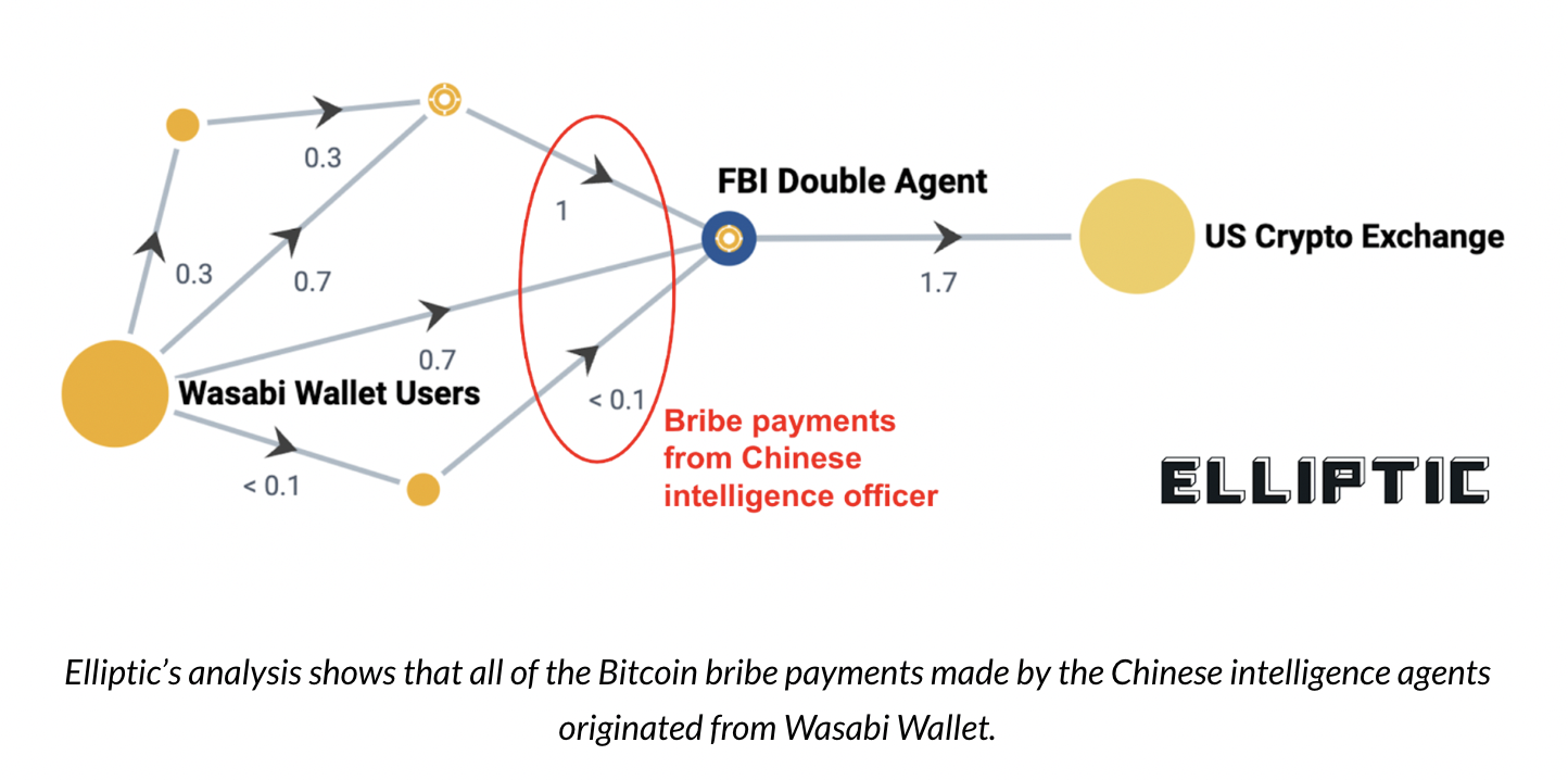 According to an analysis by cryptocurrency risk management firm Elliptic, He and Wang used Wasabi Wallet to conceal the BTC transactions allegedly used for bribes. The firm reported the privacy wallet had previously been used in an attempt to launder BTC from the July 2020 Twitter hack and the attacks on crypto exchanges Bitfinex in 2016 and KuCoin in 2020.