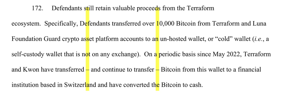 According to local journalist Park Beom-soo, following the indictment of Terraform Labs, Do Kwon and his associates allegedly transferred 10,000 bitcoin (BTC) to Sygnum Bank, a fintech bank headquartered in Switzerland.