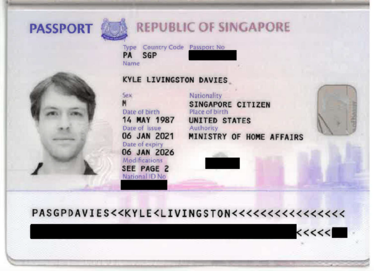 In Tuesday court documents, Davies said that he successfully became a permanent resident of Singapore in 2017.