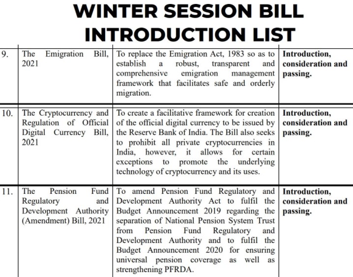 - The Indian government will introduce a new crypto regulation bill in the upcoming parliament session.