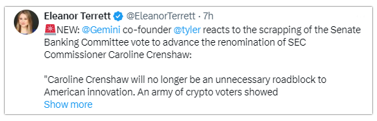 Caroline Crenshaw would not be returning as an SEC Commissioner. Her term is officially ending in January. The Senate Banking Committee has decided not to Re-nominate her. This feels like a big win for crypto people. Crenshaw has been a huge critic of cryptocurrency and often clashed with the industry. Now, with her departure and resignation of Gary Gensler, things could be very different at the SEC.