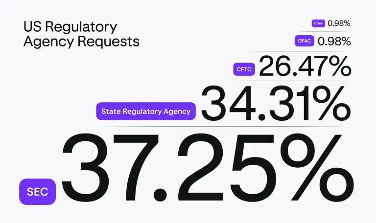 Notably, the Securities and Exchange Commission (SEC) made up only 1.9% of US agency requests but contributed 37.3% of regulatory agency inquiries.