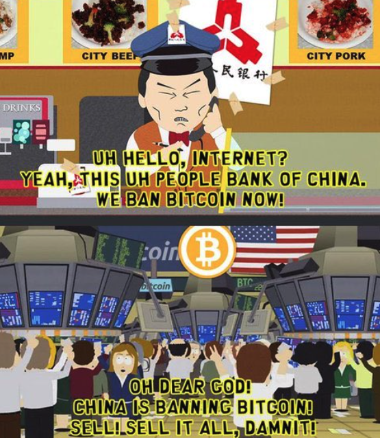 In reaction, some users shared a humorous meme referencing South Park. The meme pokes fun at the crypto market’s irrational reaction to supposed big regulatory news from China.
