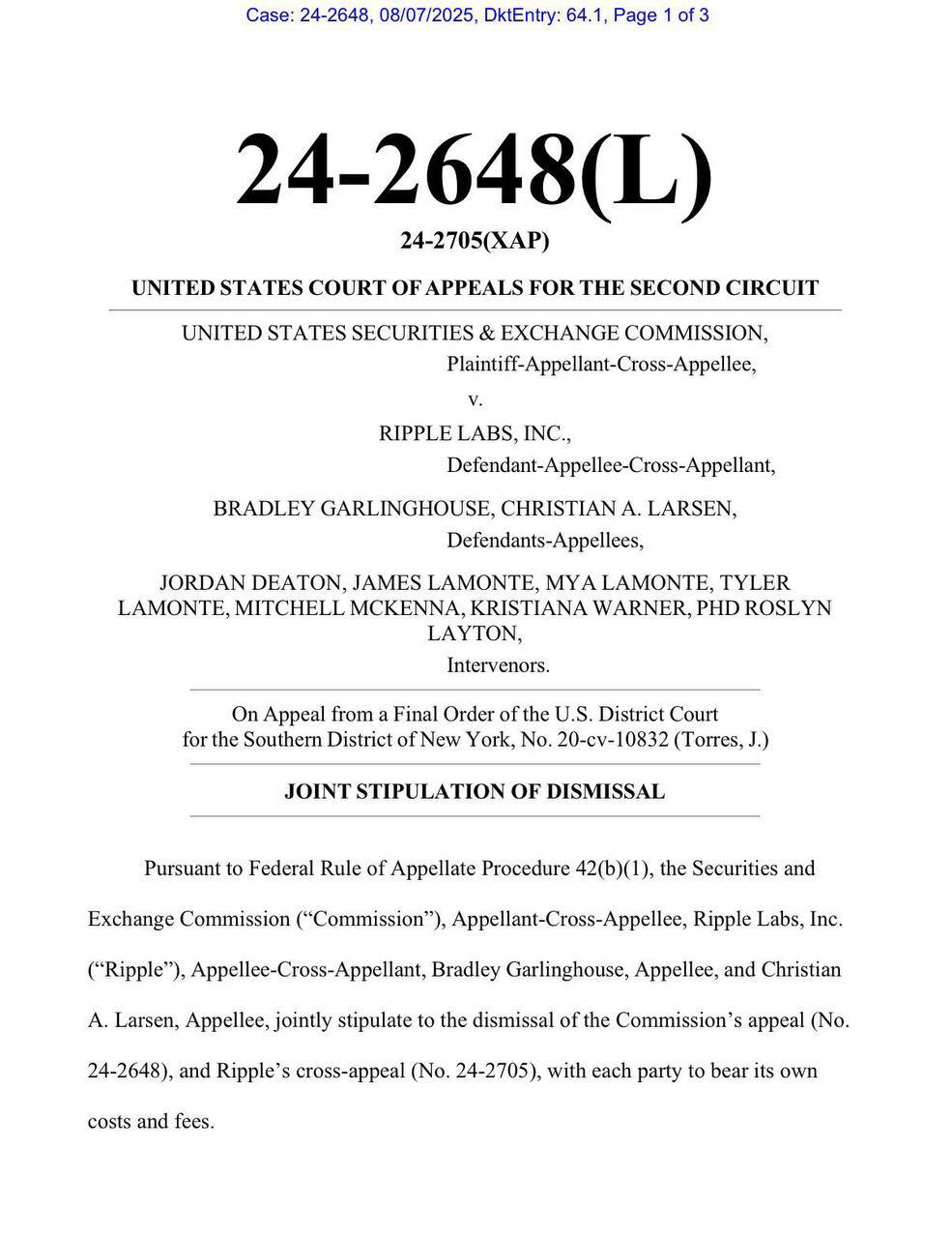 Both parties filed a joint stipulation to dismiss their respective appeals in the United States Court of Appeals for the Second Circuit, marking the end of a legal dispute that has shaped the regulatory conversation around digital assets for half a decade.