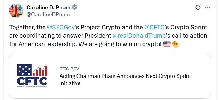 “The Trump Administration has ushered in a new dawn for crypto, and it’s up to market participants to seize this opportunity to be a part of the Golden Age of innovation.”