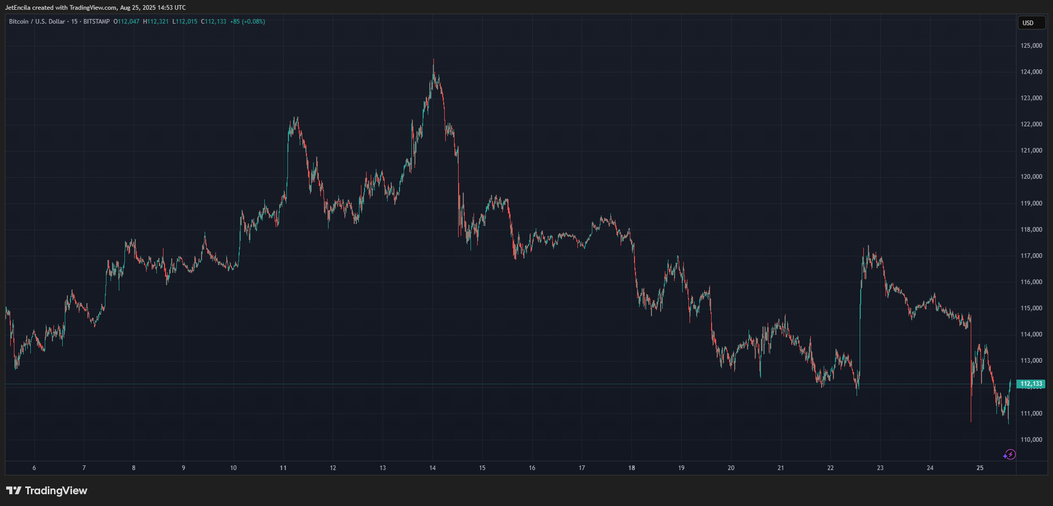 BTCUSD trading at $121,858 on the 24-hour chart: TradingView