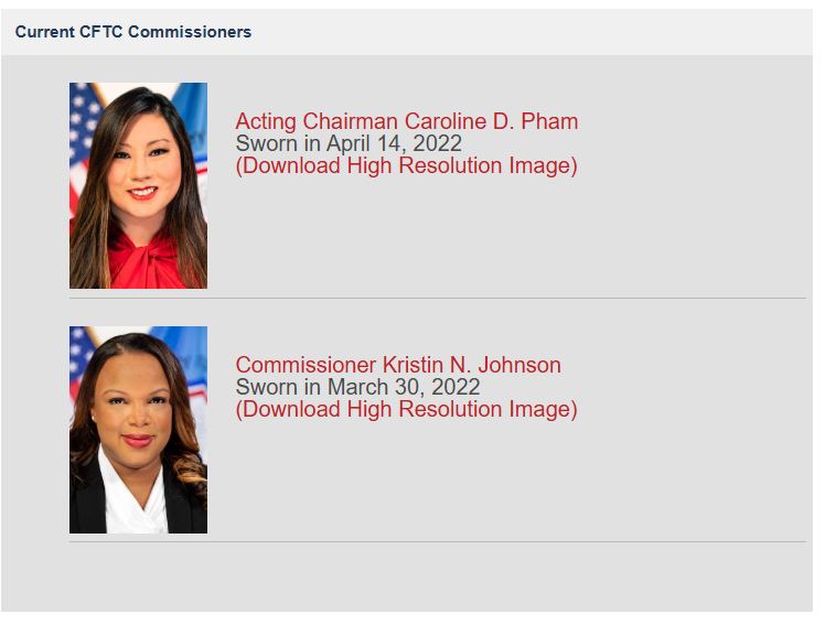 Five commissioners are supposed to make up the CFTC, and no more than three can be from the same political party.