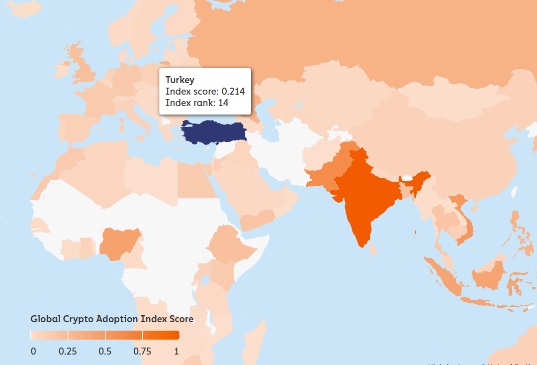Cryptocurrency adoption in Turkey has been climbing steadily, supported by the growth of centralized retail platforms and the increasing presence of institutional crypto services in the country, according to the latest Chainalysis Global Crypto Adoption Index, released in September.
