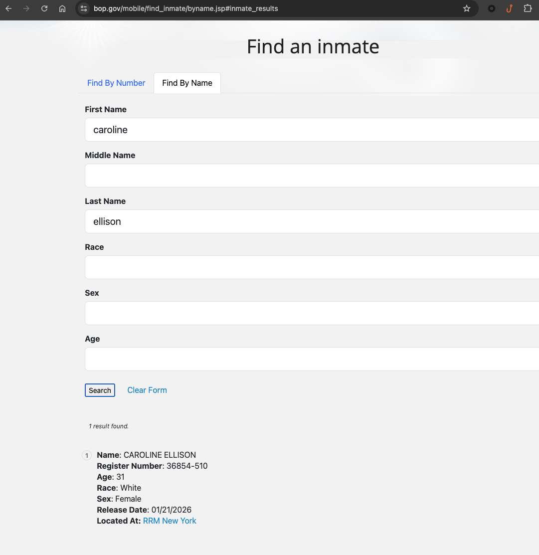 Ellison’s release stands in sharp contrast to Bankman-Fried’s 25-year sentence, which he is serving at a low-security federal prison in the Los Angeles area.