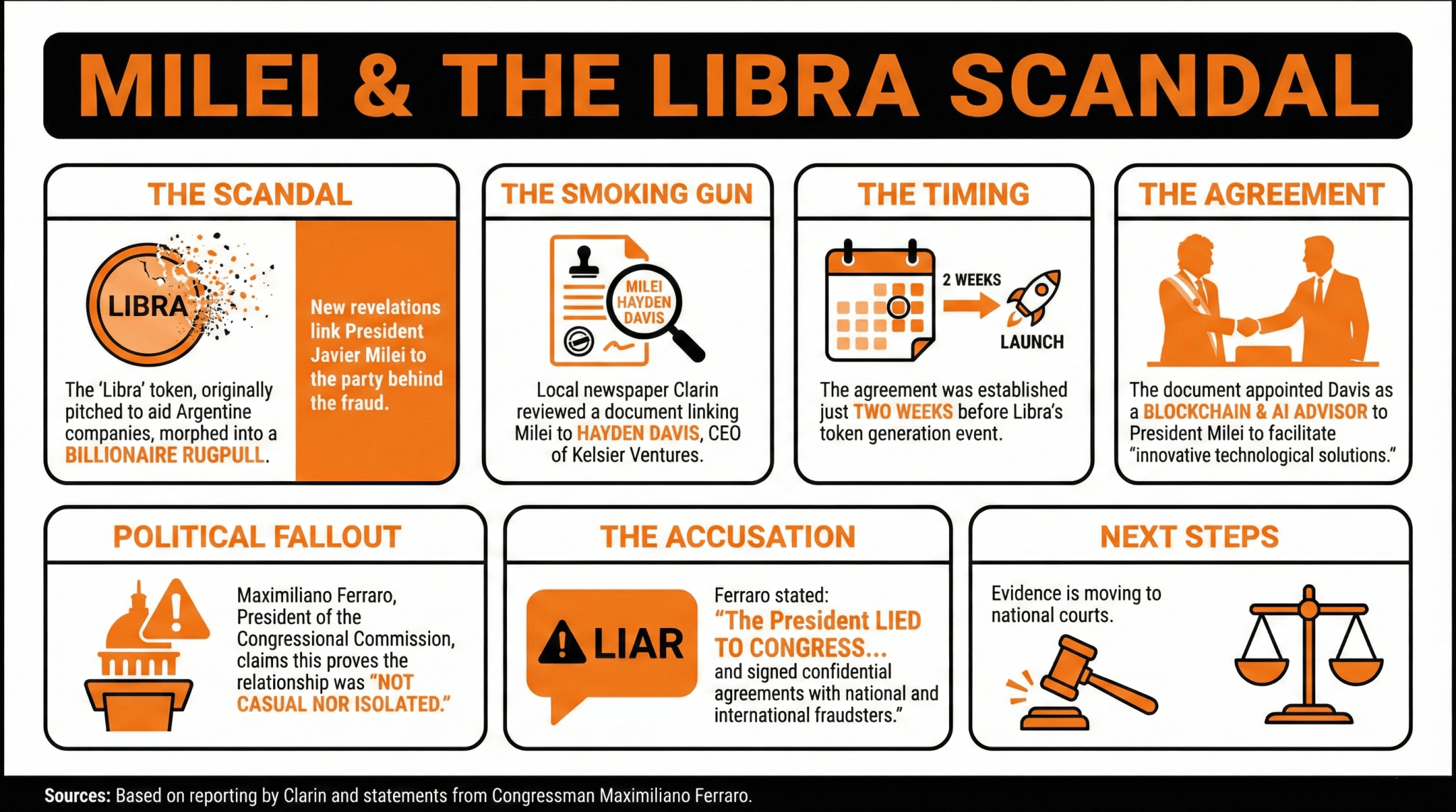 Recently, local newspaper Clarin reviewed a document linking both President Javier Milei and Hayden Davis, CEO of Kelsier Ventures, two weeks before the launch of Libra. The agreement establishes Davis, who was part of the launch of Libra, as a blockchain and artificial intelligence (AI) advisor to Milei.