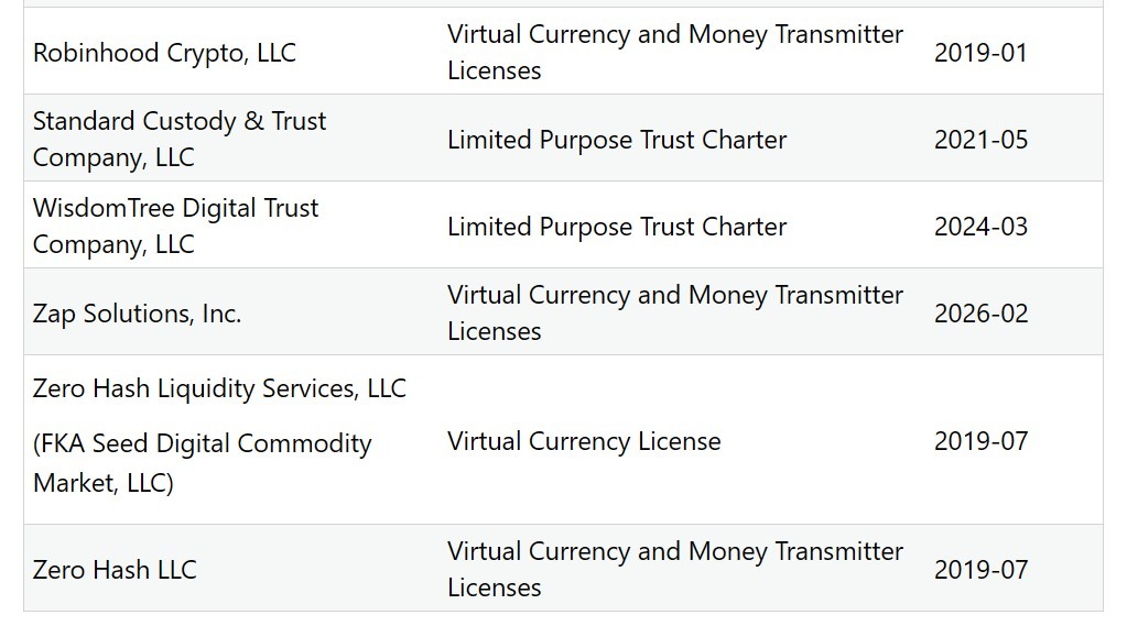 Other firms holding BitLicenses in New York include MoonPay, Coinbase, eToro, Robinhood and Circle, according to NYDFS records.