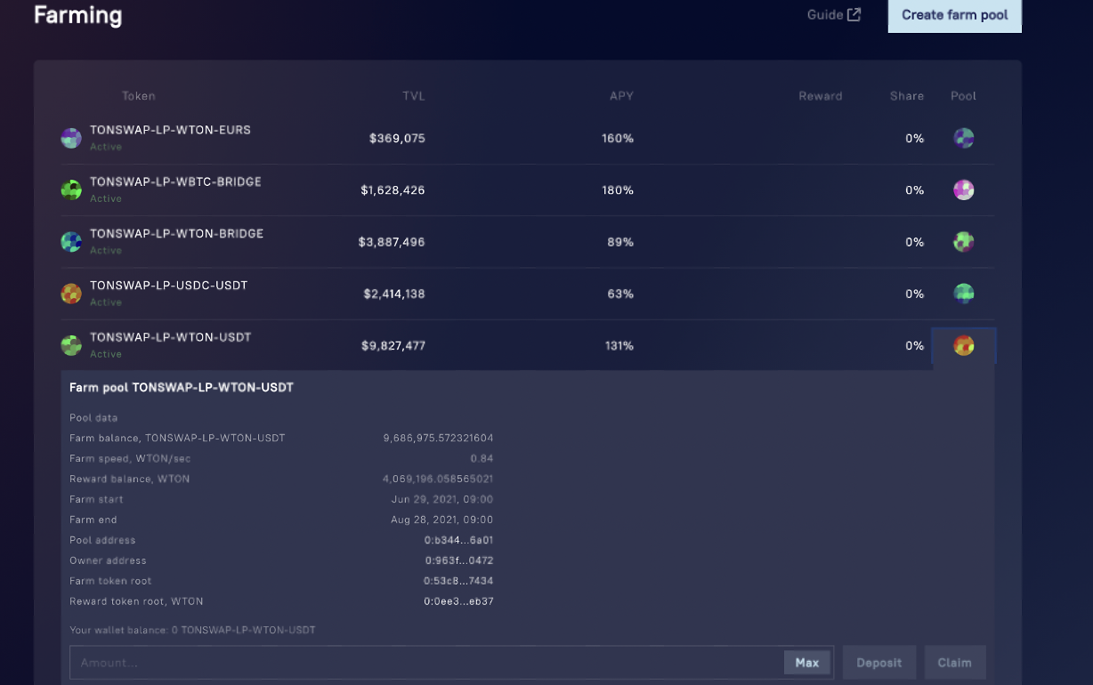 To put my WTON to use, Free TON provides me with two opportunities – provide liquidity to token pairs or engage in yield farming.