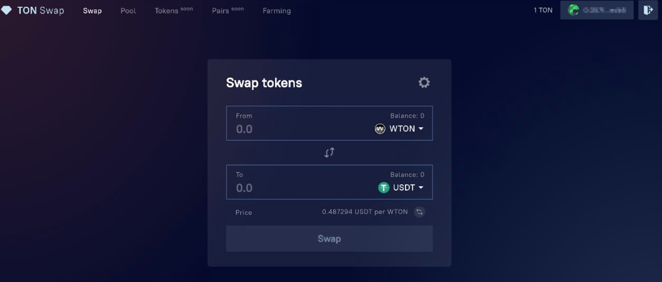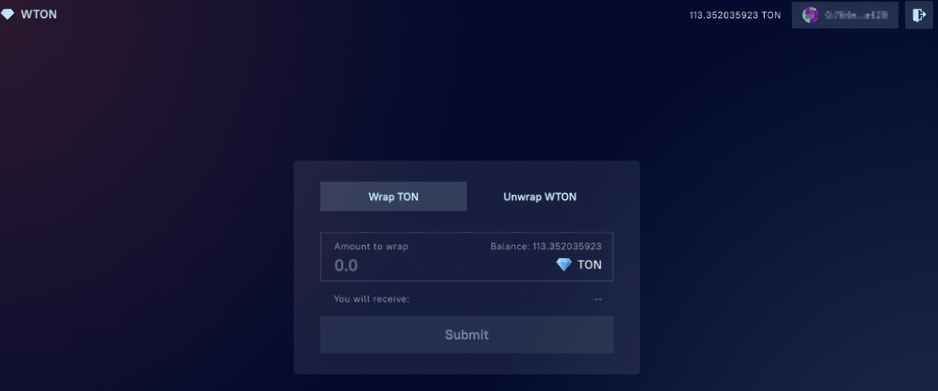 Please note that both yield farming and providing liquidity are not possible with regular TON. If you own regular TONs, you can easily swap it for WTON here. Just enter the amount of TON you would like to swap, and add 1 TON to it which shall act as the transaction fee.