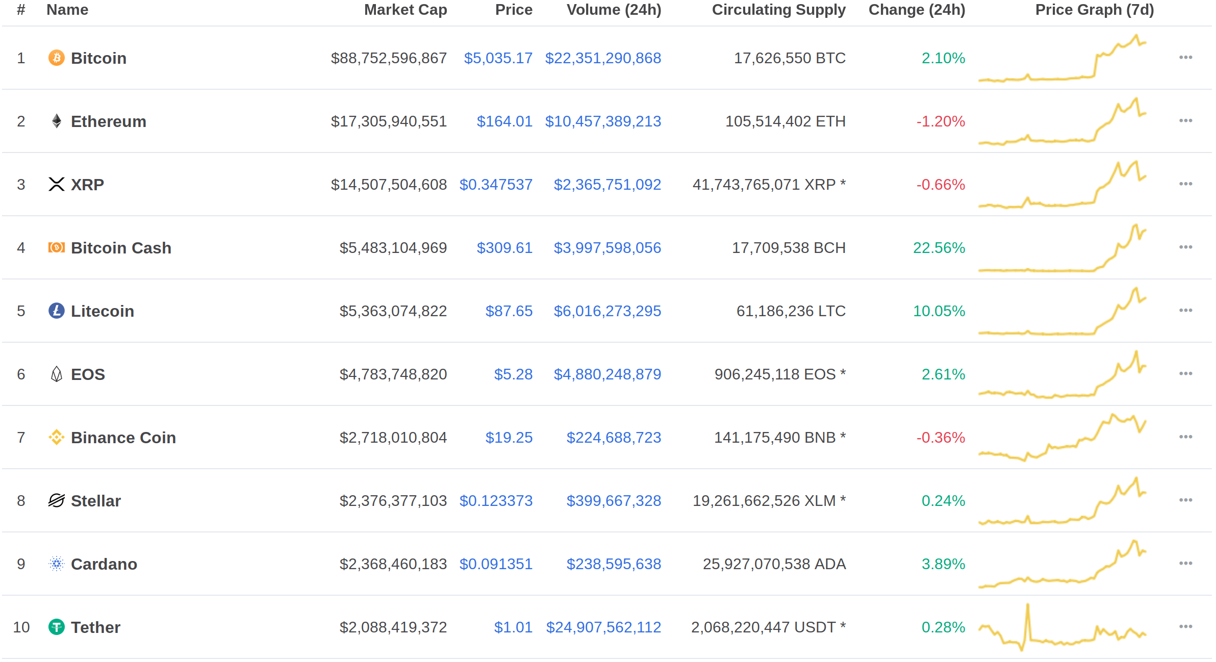The surge of Bitcoin Cash has pushed the coin higher on the list of the top 10 cryptocurrencies by market cap. Bitcoin Cash is now in the number four spot, up from sixth place on April 1st. Litecoin has remained in the number five slot.