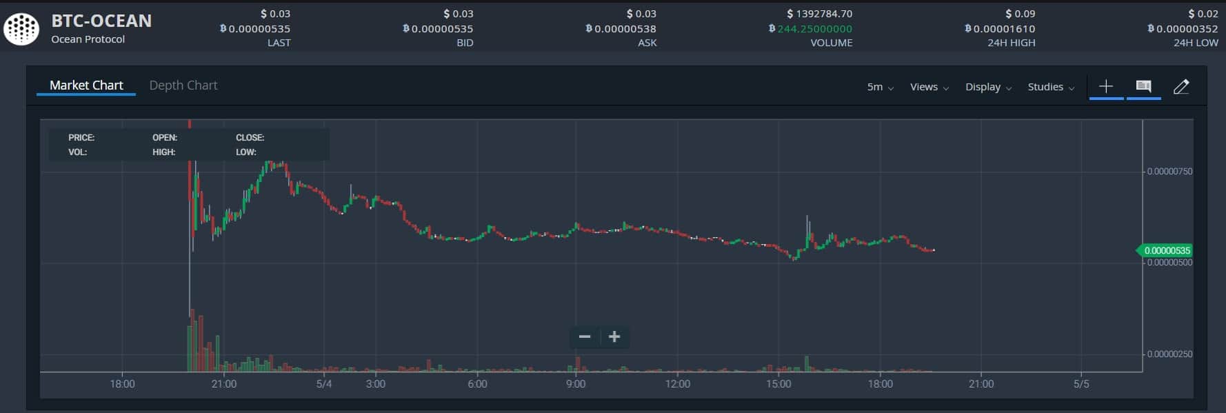 Ocean Protocol (OCEAN) price for the trading day is $0.03 with a daily volume of $1,510,399 across all exchanges.