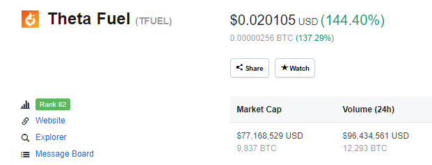 Binance have announced their next listing on the exchange, which will be Theta Fuel (TFUEL). While the coin has not been listed on the exchange as yet, the news saw a massive pump in price following the announcement.