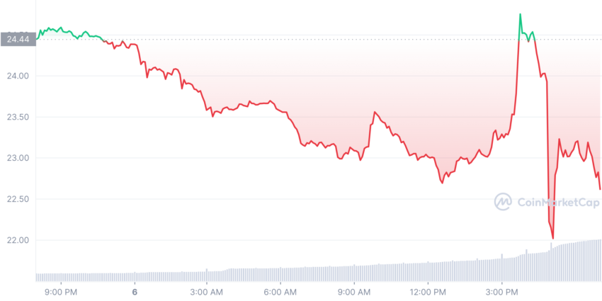 Following the news, FTT dropped by 7.6% in the last 24 hours and is currently trading at $22.62. The token is 73% down from its ATH of $84.18.