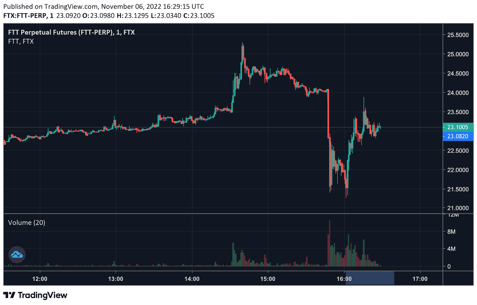 According to CoinMarketCap, the price of FTT decreased 14% over the past 24 hours to $22.02, its lowest price since June. At the time of publication, the price of FTT rose to $23.03.