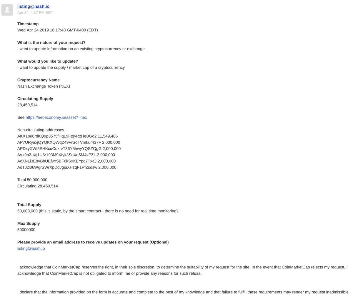 However, more had similar issues. A Twitter user, @xxt4x7, asked CoinMarketCap to rectify Nash Exchange’s data regarding circulating supply and total supply, regarding which CoinMarketCap was previously informed. However, no action had been taken.