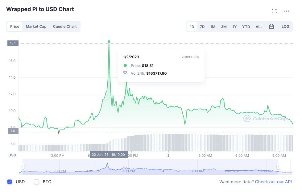 Wrapped Pi token surged to nearly $20 on January 2 before returning to a price point under $10. The token has caused quite a stir in less than a week since launching, exemplified most by the volatility in the token’s price action.