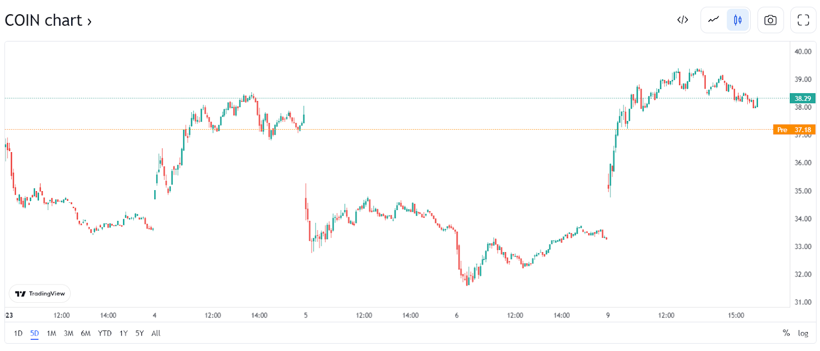 At press time, the premarket price of Coinbase stock (NASDAQ: COIN) is slightly down, standing at $37.18 as it declined $0.37 or 0.99% from $37.55. On Monday, January 9, the price of Coinbase stock closed at $38.27 per share, recording an increase of 15.06% over the previous 24 hours, as well as being up 4.71% in the past five days, while still trying to recover from the 10.16% loss on its monthly chart.