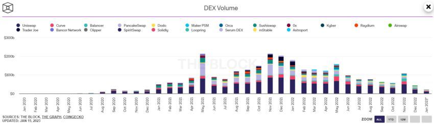 In its December release, CoinMarketCap also noted that there is compelling evidence that DEXs are eroding the CEX market share by citing the DEX-to-CEX spot volume ratios of 2022. However, January figures are relatively lower for decentralized exchanges.