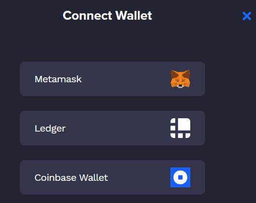 Click on the Connect Wallet button. It will allow you to connect with any of the below wallets: Metamask, Ledger, or Coinbase wallet.