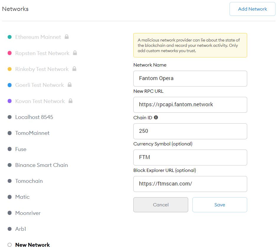 - Network Name: Fantom Opera
