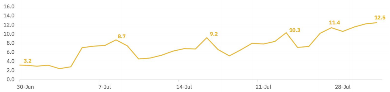 “Specifically, the number of new pairs being added onto the Binance DEX remains high with theaddition of 41 new pairs listed in July.
