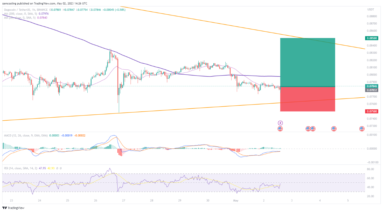 DOGE's current price stands at $0.07796, down by 1.10%.