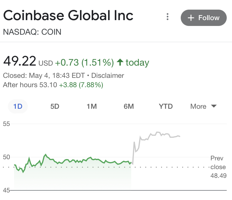 The results beat expectations from some analysts, leading to a 7% spike in Coinbase’s (COIN) share price in after hours trading.