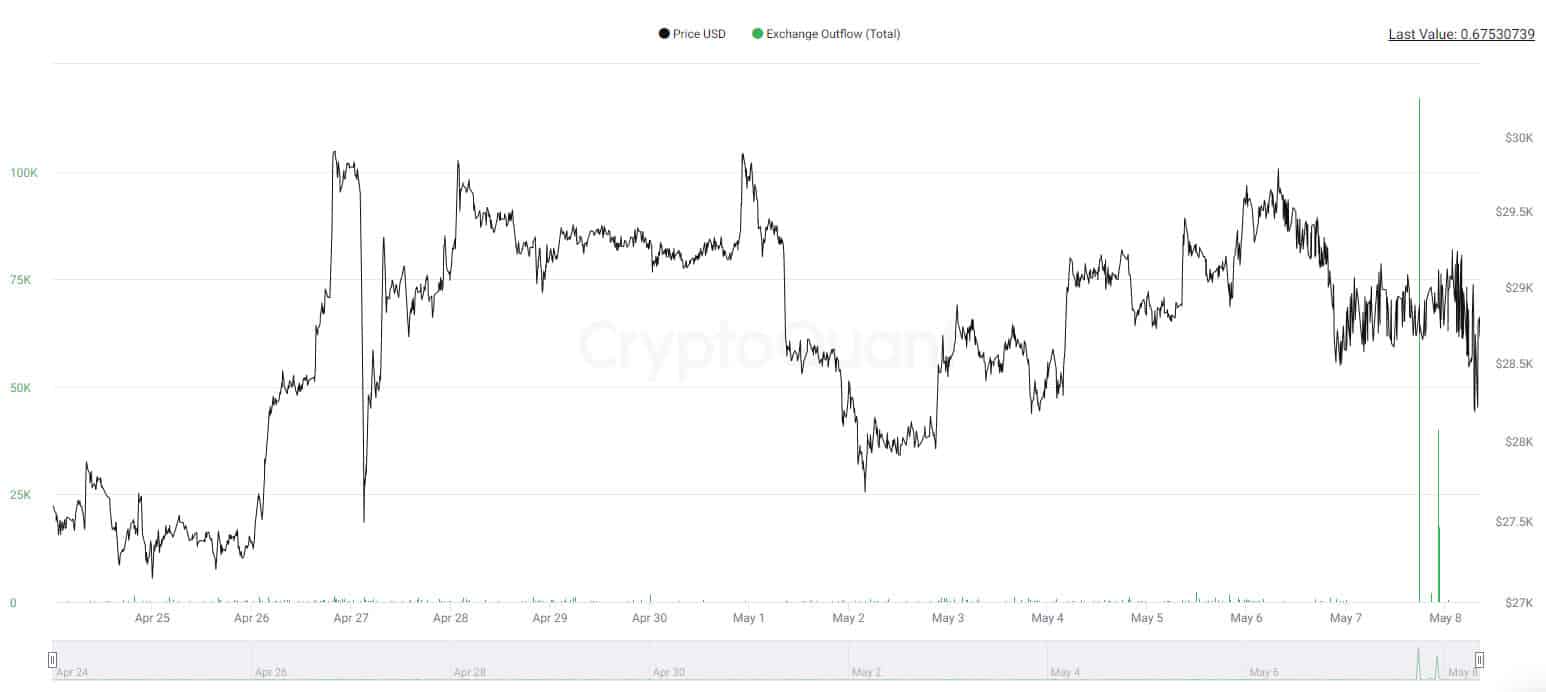On May 7, there were three huge changes in Binance’s Bitcoin balance. According to data analytics platform CryptoQuant, they consisted of an outflow of 117,359 BTC, an inflow of 10,036 BTC, and an outflow of 40,184 BTC.